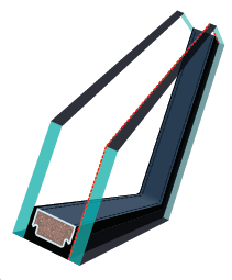 Három alacsony emissziójú bevonattal ellátott üveget és nem áthülő, páralecsapódást csökkentő műanyag TGI távtartóból áll, a belső üvegréteg P2A osztályú betörésgátló fóliával van bevonva. Az ablak három TGI távtartót tartalmaz.